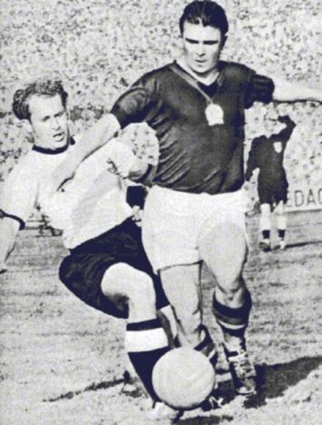West German defender Liebrich tackling Puskas in the final.