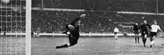 Bobby Charlton scores from long range against Mexico in the first round in a game England won 2-0.