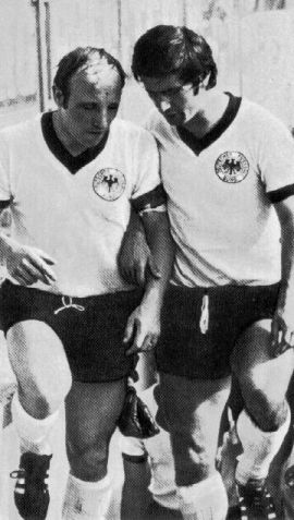 West Germany's dangerous attacking pair Uwe Seeler (left) and Gerd Müller, the tournament's topscorer with 10 goals.