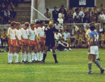 first round match against Italy. Marco Tardelli (14) waits in the foreground.