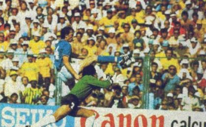 Marco Tardelli of Italy battling for possession with Argentina's goalkeeper Ubaldo Fillol. Tardelli scored one of the goals in Italy's 2-1 win.