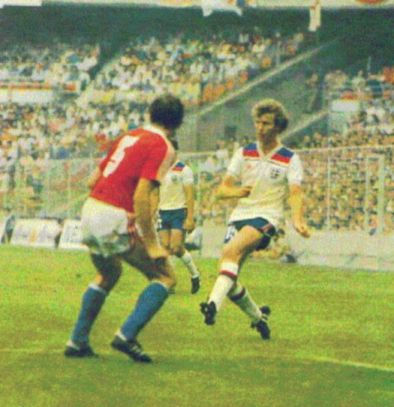 England beat Czechoslovakia 2-0. Here Graham Rix crosses the ball into the penalty area.