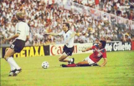 which ended 0-0. Rummenigge (11) following from distance here, almost won