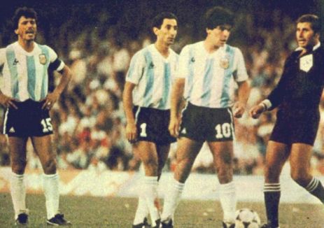 Three of Argentina's greatest ever players. From left: Daniel Passarella, Osvaldo Ardiles and Diego Maradona. Here from their opening game against Belgium which they lost surprisingly 1-0.