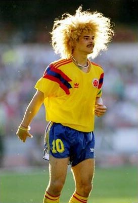 Colombia's Carlos Valderrama, here against Cameroon, is one of very few players to have captained his country in three World Cups.