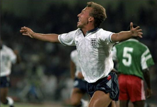 David Platt has put England 1-0 up against Cameroon with a wonderful header after 26 minutes.
